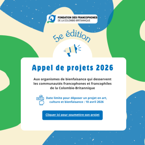 - des organismes à créer des initiatives en art, culture et bienfaisance en français en Colombie-Britannique